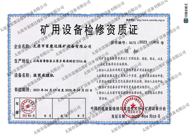 矿用设备检修资质证