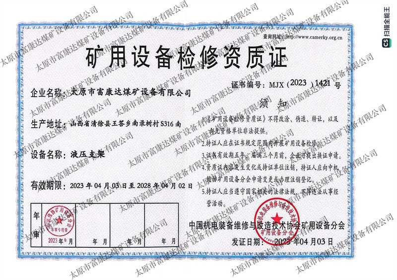 矿用设备检修资质证