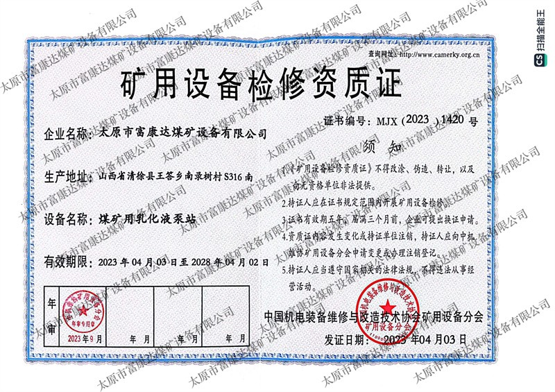 矿用设备检修资质证