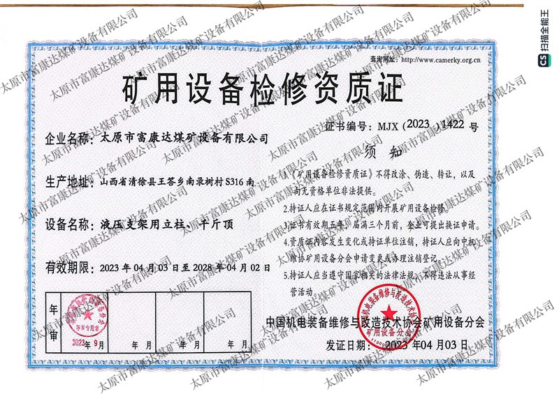 矿用设备检修资质证